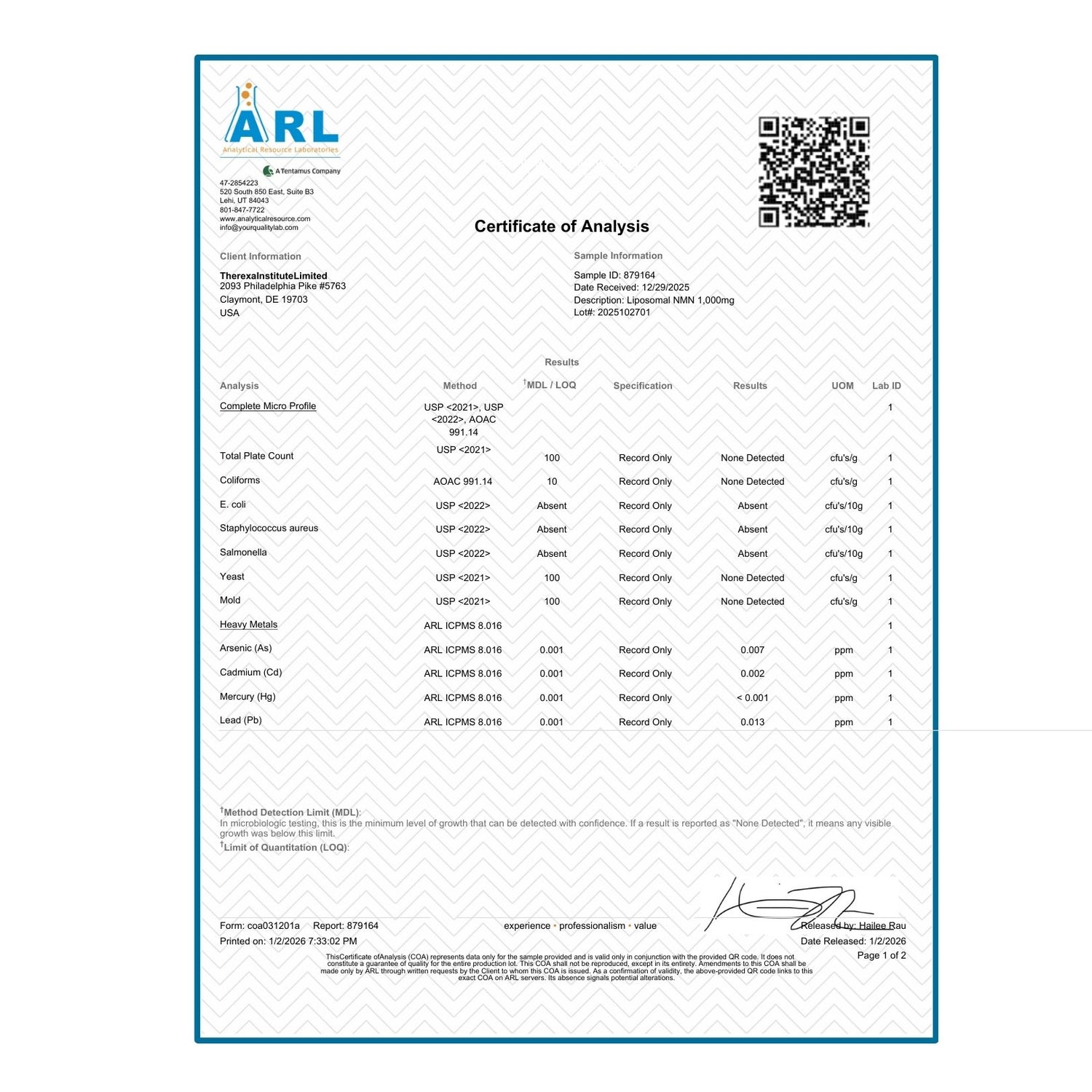 Every Therexa product is sent to independent USA laboratories for third-party testing. We test for purity, potency, heavy metals, and contaminants - then publish the full lab reports. No summaries. No spin. Just data.